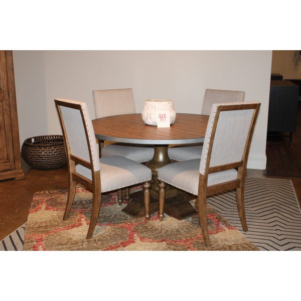 A One-of-a-kind 5PC Dining Room by Klaussner, from the Austen Collection. It comes with a rectangular Dining Table with base and 4 upholstered side chairs.