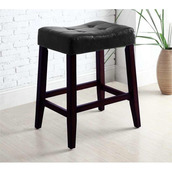 These versatile stools are a great option for your seating needs. The simple design fits into various decors. A wide and comfortable seat features button tufting detail and is upholstered in an easy care faux leather.