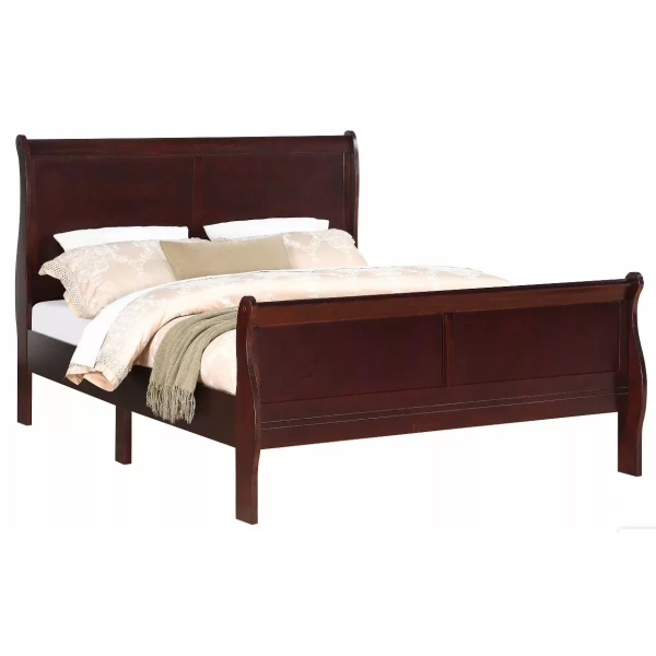 The Cherry King Bed is a traditional style bed with a rich cherry finish. The high headboard and low footboard have slightly flared styling, and the bracket legs add to the classic look. This bed is perfect for a bedroom that needs a touch of elegance.