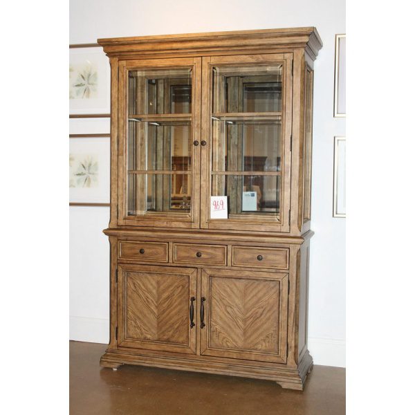 A One-of-a-kind 2PC china cabinet by Klaussner, from the Crossroads Collection. It comes with a curio china buffet and hutch.