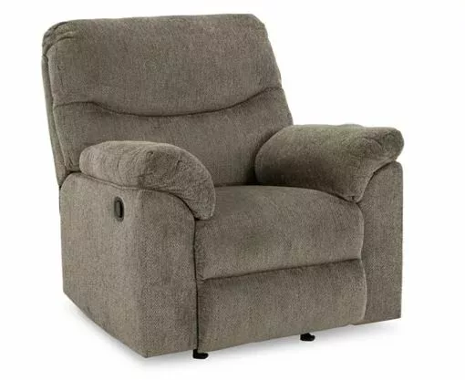 Experience ultimate relaxation with the Melton Rocker Recliner, a perfect blend of contemporary style and comfort. Designed with soft polyester upholstery and a gentle rocking motion, this recliner offers versatility and luxury for any living space. The pull-tab reclining feature allows for effortless adjustments, while the attached cushions provide additional support for long lounging sessions. With its neutral putty-colored upholstery, the Melton Rocker Recliner easily complements various home décor themes, making it a stylish yet practical addition to your home.